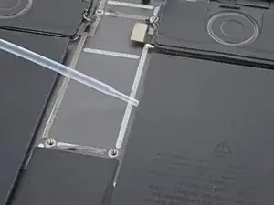 Наклоните iPad, чтобы изопропиловый спирт мог попасть под батарею.
