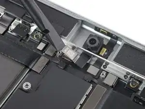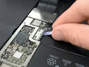 Не пытайтесь полностью снять логическую плату. Она соединена с гибким кабелем, приклеенным к раме iPad.