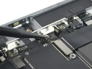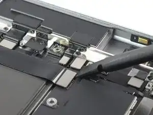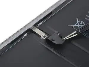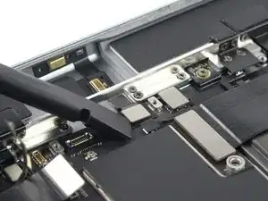 В следующих двух шагах показан iPad Pro 12,9 дюйма первого поколения. Внутреннее устройство немного отличается, но процедура фиксации одинакова.