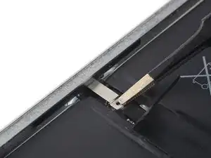 Используйте расширительный инструмент или лопатку-алебарду, чтобы разрезать клей вдоль правого края iPad.