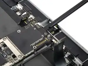 Не тяните кабель с усилием. Если кабель туго сидит, приложите подогретый iOpener, чтобы дополнительно размягчить клей.