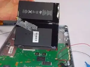 Используйте пластиковый инструмент для удаления клея, который держит аккумулятор на месте.