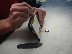 Вставьте плоскую сторону стандартной лопатки под аккумулятор и, используя рычажное движение, ослабьте клей, удерживающий его к сенсорному экрану.