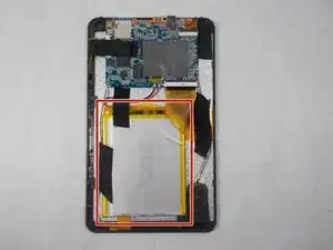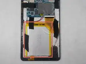 Двигайтесь по периметру аккумулятора, отмеченному красным прямоугольником. Медленно и аккуратно подденьте его, пока он полностью не отделится от задней пластины.
