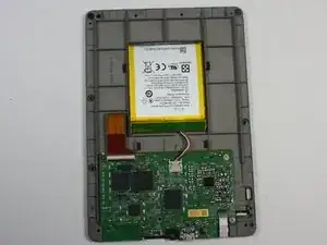 Переверните Kindle, открыв аккумулятор и материнскую плату.