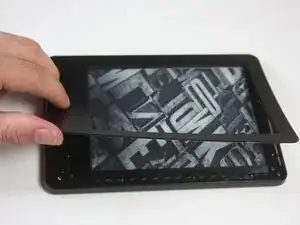 Чтобы не повредить переднюю панель, отдирайте панель от углов к центру Kindle.