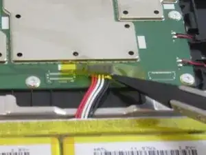 Снимите желтую пластиковую ленту с проводов с помощью пинцета.
