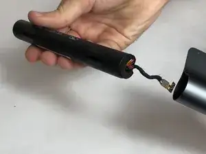 Начните выталкивать аккумулятор, используя пластиковый медиатор с конца с проводами.