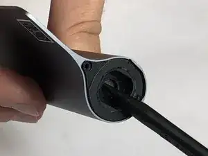 Сняв петлю, найдите конец, из которого не выходят провода. Подденьте чёрную крышку винта пинцетом и удалите винт 3 мм с помощью отвёртки PH00.