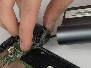 На противоположном конце петли найдите серебристую металлическую пластину над проводами, выходящими из конца петли. Удалите два винта 3 мм с помощью отвёртки PH00. Снимите пластину пальцами.