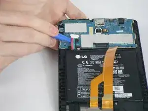 Снимите разъём аккумулятора, отмеченный оранжевым, поддев его вверх.Для этого может потребоваться усилие, будьте осторожны, чтобы ничего не повредить.