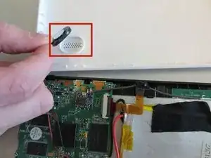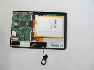 С помощью лопатки аккуратно отклейте аккумулятор от панели планшета.