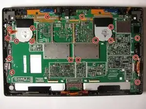 Отверткой Torx T5 отвинтите 17 винтов T5 на материнской плате.