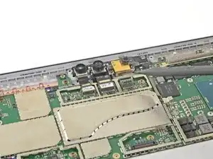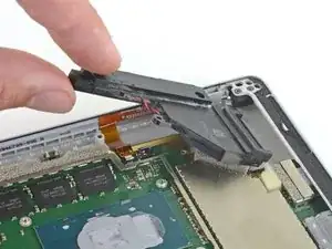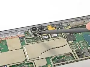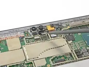 Поверните инструмент в сторону нижнего края Surface, чтобы продвинуть его под нижний край выреза динамика.