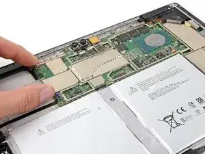 Если при сборке Surface Pro Вы устанавливаете новый аккумулятор, удалите карту сейчас.