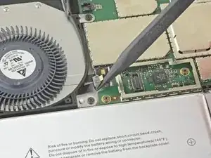 Используйте отвёртку Torx T3, чтобы выкрутить следующие винты с вентилятора и материнской платы: