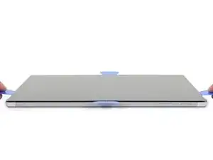 Проведите медиатор вдоль левого края Surface, чтобы разрезать клей экрана.