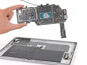 Необязательное снятие материнской платы: В этом руководстве по аккумулятору показано, как снять материнскую плату, чтобы предотвратить её повреждение при вынимании аккумулятора. Если вы решите не снимать материнскую плату, вы можете пропустить шаги 30–48. Если вы оставляете материнскую плату на месте: