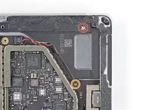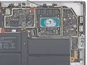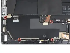 Используйте отвёртку Torx T3, чтобы выкрутить следующие три винта, крепящие материнскую плату: