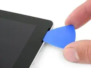 Не вставляйте медиатор глубже чёрной рамки на краю экрана. Слишком глубокое проникновение может повредить ЖК-матрицу.