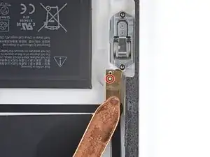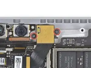 Используйте отвёртку T3 Torx, чтобы удалить два винта длиной 2.6 мм, фиксирующие заднюю камеру.