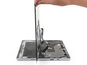 Очень медленно поднимите узел экрана от корпуса Surface. Если вы почувствуете сопротивление, остановитесь и проверьте, что весь клей отделён.