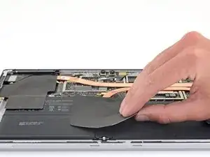 Аккуратно вытяните материнскую плату из правого края Surface.
