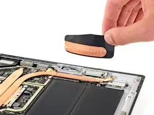 Проведите медиатор вниз по правому краю Surface, чтобы разрезать клей под экраном.