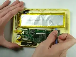 С помощью инструмента для вскрытия iFixit аккуратно отделите аккумулятор от задней стороны планшета.