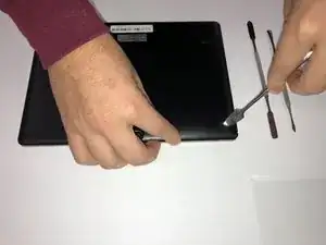 Используйте металлическую лопатку, чтобы начать поднимать заднюю крышку.