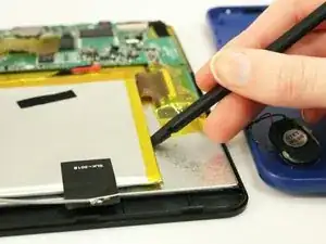Используйте синюю пластиковую лопатку, чтобы отжать корпус планшета.