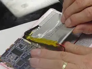 Приклейте аккумулятор обратно на заднюю часть экрана устройства и защелкните заднюю крышку, чтобы завершить ремонт.