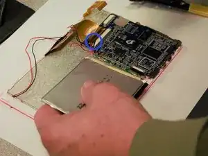 Осторожно приподнимите аккумулятор, вставив пластиковый инструмент под аккумулятор. Он приклеен к экрану, поэтому процесс удаления будет деликатным.