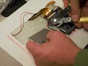 Шаги показывают, как удалить аккумулятор, отрезав прикрепленные провода от этого устройства.