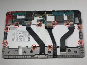 Используйте отвёртку Phillips #00, чтобы открутить десять 3 мм винтов, удерживающих аккумулятор на месте.