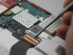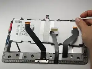 Сначала необходимо снять заднюю панель устройства, чтобы получить доступ к отсеку аккумулятора. Всего требуется отключить четыре кабеля перед тем, как аккумулятор можно будет вынуть: один силовой кабель, соединяющий материнскую плату с самим аккумулятором, и три ленточных кабеля, ограничивающие доступ к аккумулятору. Небольшая отвёртка для электроники, предпочтительно Phillips #00, позволит открутить винты, удерживающие аккумулятор в посадочном месте. После этого аккумулятор можно заменить.