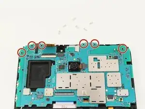 Используйте отвёртку JIS #00, чтобы выкрутить шесть винтов 4.5 мм в верхней части материнской платы.