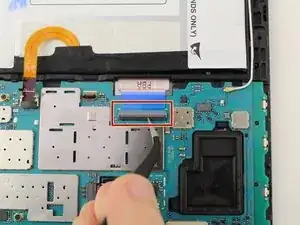 Используйте пинцет, чтобы перевернуть защёлку на нижней части ленты, которая проходит над аккумулятором.