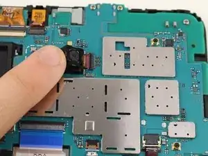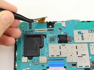 Снимите фронтальную камеру с материнской платы, приподняв её пинцетом.