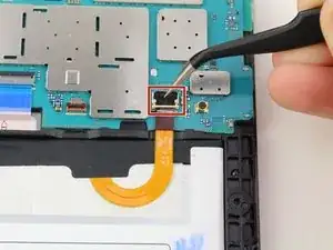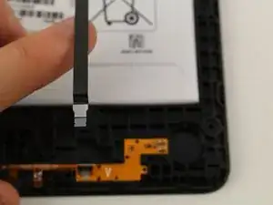 Используйте пинцет, чтобы перевернуть защёлку коннектора, идущего от аккумулятора к материнской плате.
