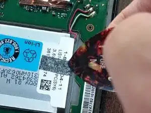 Как только вы снимете заднюю крышку и увидите плату, к которой подключен аккумулятор, удалите черную изоляционную ленту, удерживающую провода, и выбросьте её (сомнительно, что её можно использовать повторно).