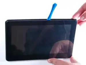 Сначала необходимо открыть планшет с помощью лопатки для вскрытия.