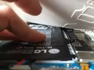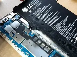 Осторожно оттяните заднюю крышку от клея, крепящего аккумулятор.