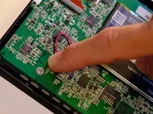 Подключите силовой кабель; я счёл самым простым просто вставить его пальцами. Убедитесь, что разъём плотно подключен и аккумулятор лежит ровно на плате.