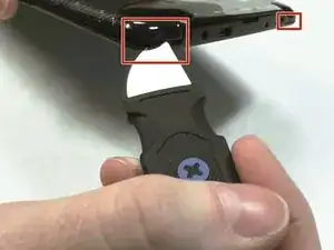 Используйте открывающий инструмент, чтобы поднять аккумулятор из устройства.