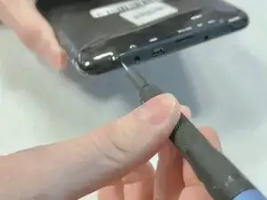 Для этого вставьте инструмент в тонкий зазор между задней панелью и экраном в каждом углу устройства.
