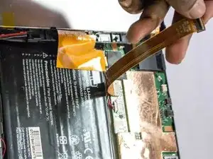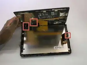 Там находятся три разъема: для экрана, для дигитайзера и для материнской платы. Они удерживаются давлением задней панели и узла экрана.