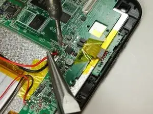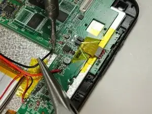 Отпаять два провода, соединяющие аккумуляторный блок с материнской платой, используя пассатижи с тонкими губками и паяльник.