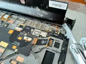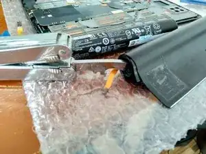 Осторожно вытяните шлейф батареи вместе с батареей.