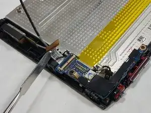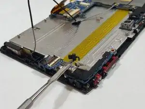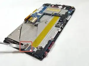 Используя плоский край лопатки или ноготь, аккуратно подденьте каждый разъём строго вверх из его гнезда, затем снимите FPC кабель с устройства.